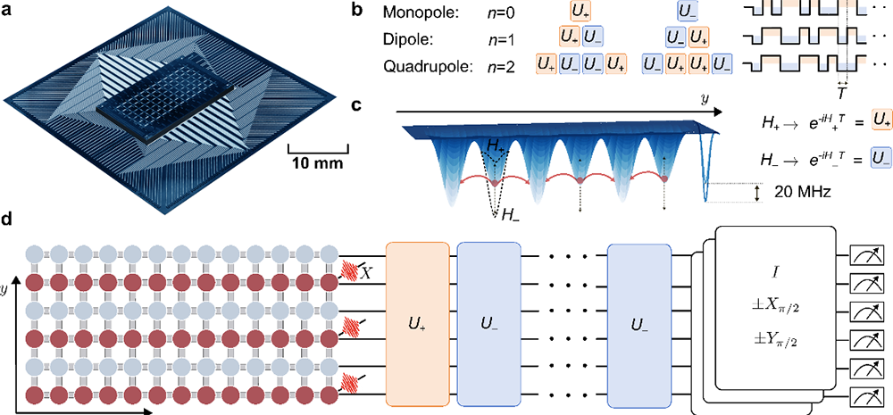 实验的初态设置为密度波的交替半满状态,奇偶行设置低高交错的势能差,并给偶数行加上由两个参数驱动极数n,驱动单元时长T所描述的RMD驱动,使其进行时间演化,对末态进行量子态层析以及粒子数测量。