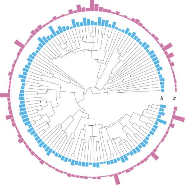 喜马拉雅—横断山区120种鸣禽的全基因组核苷酸多样性(π)与杂合度(h)