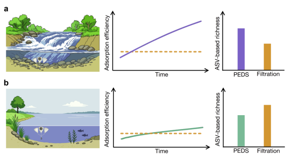 环境DNA(eDNA)技术因其非侵入性和高灵敏度,被认为是未来水生生物多样性监测的重要工具。然而,传统的主动过滤方法在浑浊水体和高流速环境中效率较低,制约了eDNA在河流等动态生态系统中的应用。近年来,被动式环境DNA采样器作为一种新兴替代方案逐渐受到关注。但在不同水动力条件下,被动采样能否稳定、有效地反映生物群落结构,其作用机制仍缺乏系统量化。