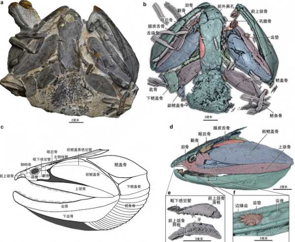 钝齿宏颌鱼全长超过1米,是志留纪最大的脊椎动物。团队经过近10年时间,经过数十次尝试,使用先进的成像技术和计算机三维重建和复原,还原了其完整的头部三维结构和深藏内部的解剖特征。