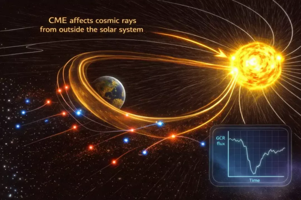 日冕物质抛射及其阻碍宇宙线传播影响的示意图