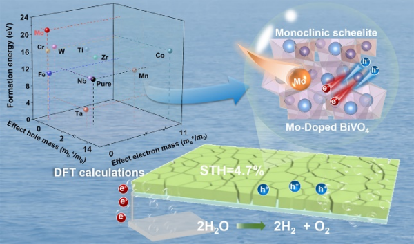 近日,中国科学院大连化学物理研究所科研团队在BiVO4光阳极研究领域取得进展。团队基于密度泛函理论计算,通过理论模拟筛选与实验相结合,设计合成了钼(Mo)掺杂的BiVO4光阳极,解决了MOD制备BiVO4光阳极中存在相不纯、电荷复合严重等导致活性不高的问题,实现了四方相的抑制生成与高载流子迁移率的兼顾,提升了其光电催化性能。