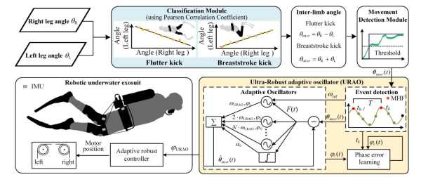 近日,中国科学院深圳先进技术研究院基于前期研制的柔性潜水助力外骨骼系统PEAKED,提出超鲁棒自适应振荡器动作相位估计方法(URAO),攻克了水下高频突变打腿动作的相位精准预测难题,让水下外骨骼助力更同步、更安全、更高效。