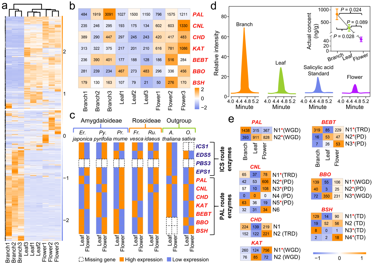研究揭示蔷薇科水杨酸生物合成通路演化机制
