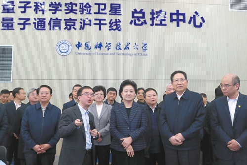 3月25日,中共中央政治局委员、国务院副总理刘延东考察量子科学实验卫星及量子通信京沪干线合肥总控中心。 安徽日报记者 徐国康 摄