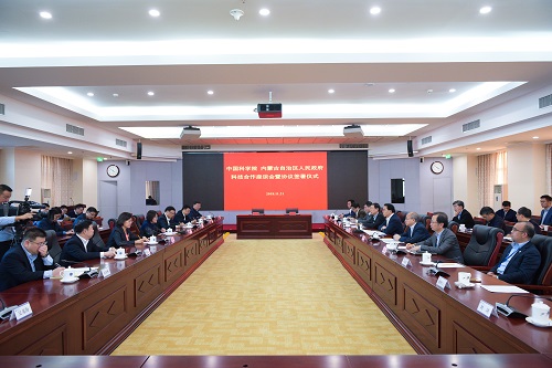 白春礼代表中科院感谢内蒙古自治区党委、政府长期以来给予中科院各项事业发展的支持。他表示,中科院与内蒙古自治区于1998年确立全面科技合作关系,2010年双方续签《内蒙古自治区人民政府 中国科学院全面科技合作协议书》。协议实施期间,双方围绕内蒙古工业转型升级、矿产资源开发、生态环境保护等核心需求,着力推进区域创新驱动发展,取得了一批具有重要影响的合作成果。