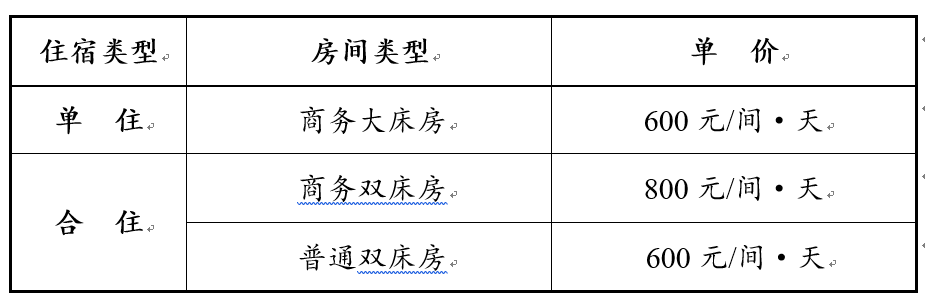 2. 培训统一安排住宿,房间类型和价格见下表: