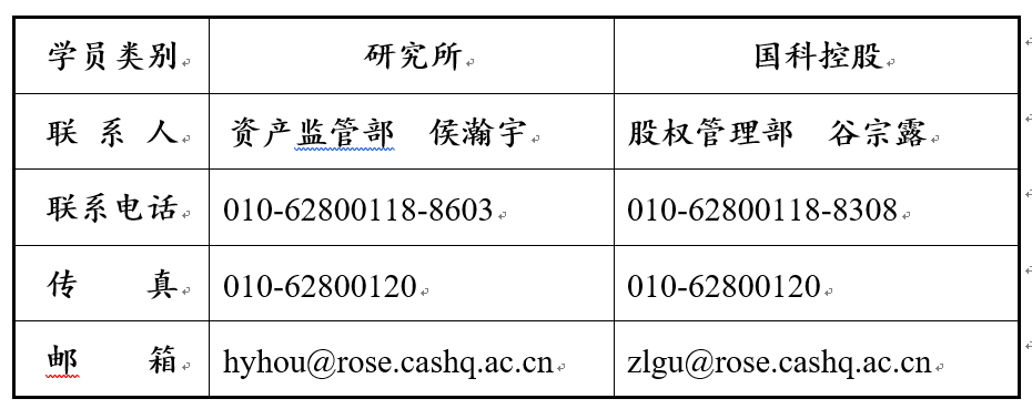 3. 本通知电子文本通过ARP发送至院属单位,也可通过国科控股网站“通知公告栏”的链接地址下载。培训通知不再发送纸介原件。如学员需要培训通知原件,请于9月7日前电话联系会务组,签到时领取。