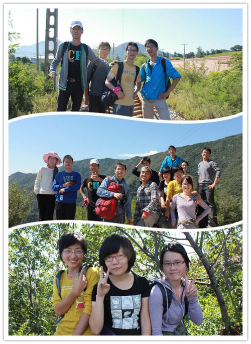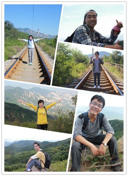 早上八点半,队员们到达了位于鹫峰山脚下的北安河村。此次登山的起点是鹫峰东南侧的铁路豁口,整个途中均在林荫小路中穿行。从山脚到鹫峰石阶的一段路程,大家登得比较轻松,然而在通往望京塔的一小段距离却真真实实地让大家感觉到了登山的困难。这一段被众多户外驴友命名为“好汉坡”,据说成功冲顶的人能够在一年里克服种种困难,好运连连。大家相互鼓励相互帮助,几个体力好的男生主动帮女生背水,虽然大汗淋漓,但每个人都享受到了冲顶的那番愉悦。望京塔是此次登山的中点,但经历了好汉坡的洗礼,面对随后到来的更高的挑战,此时此刻的队员都充满了十足的干劲,颇有一番“脚踏昆仑,唯我独尊”的气势。