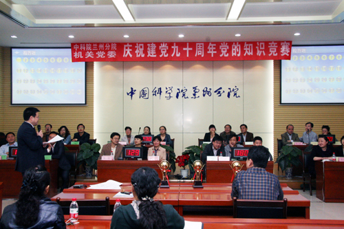 4月26日,兰州分院机关党委举办了以“党在我心中”为主题的创先争优杯党的知识竞赛活动,此次活动是分院机关庆祝中国共产党成立90周年系列活动之一。竞赛内容以党章、党史、党的基本政策方针、时事政治等为主要内容。分为三个环节,即必答题、抢答题和风险题。
