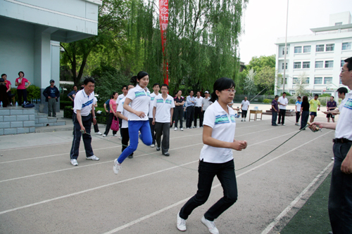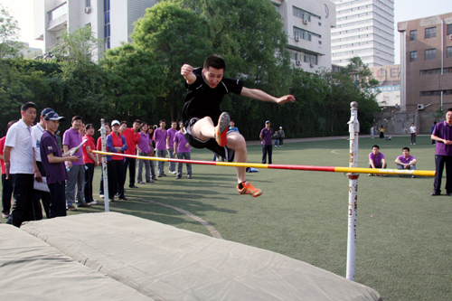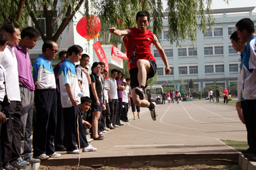 这边,助跑、曲膝、蹬地、起跳,身体腾空,轻轻越过标杆;那边,左脚尖点地、右腿微弓,身体前倾,眉头轻蹙,目标是前方百米的红线;这边,1500米的“征程”刚刚起步,“路漫漫其修远兮”,运动员正以顽强的毅力步步征服;那边,跳远之冠的争夺如火如荼,摆臂、蹬腿、挺胸、拔腰,顶头,一气呵成,身影已然飞跃几米开外;这边4×100正在上演力与美、速度与激情的完美结合;那边,10人跳绳比赛则展示了齐心协力、合力共赢的团队精神;这边,击掌、拥抱,欢呼雀跃;那边,鼓劲、加油,彼此勉励。