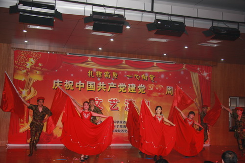 整台演出活动中各部门职工通过独唱、合唱、朗诵等形式回顾中国共产党走过的光辉历程,热情讴歌了党的丰功伟绩,唱响共产党好、社会主义好、改革开放好、伟大祖国好的主旋律,营造了喜庆热烈、昂扬振奋的浓厚氛围,集中展现了该所离退休职工、在职职工和研究生锐意进取、勇于创新的精神风貌,激发了广大干部职工坚定理想信念,坚持立足本职岗位创先争优,为开创“十二五”西高所科研工作新局面,实施中国科学院“创新2020”提供了强大的精神动力。