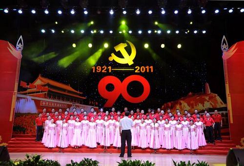 表彰会后,各单位在职、离退休党员群众欢聚一堂,载歌载舞共同庆祝党的90华诞。一首首经典革命歌曲响彻全场,表达了对党、对祖国的美好祝福。由武汉分馆离退休干部演唱的《没有共产党就没有新中国》唤起了对革命年代的美好回忆,一首《江山》歌唱了党对百姓深切的爱;在职职工演唱的《祖国不会忘记》、《在灿烂阳光下》用新时代的优美旋律,高超的合唱技巧,赢得了现场最响亮的掌声和欢呼,将演出推向高潮。