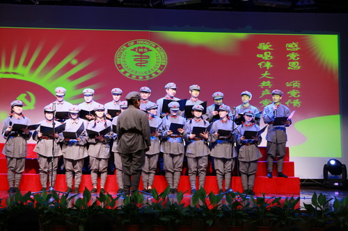 《没有共产党就没有新中国》、《保卫黄河》、《红旗飘飘》、《我的祖国》、《我和我的祖国》、《我是一个兵》、《南泥湾》、《革命人永远是年轻》、《三大纪律八项注意》《歌唱祖国》等一首首荡气回肠的经典红歌,奏响了激扬奋进的时代旋律,震撼着礼堂的每一个角落,歌颂了党的丰功伟绩,进一步坚定了永远跟党走的信念,抒发了对党对国家无限深情的祝福。各代表队还在演唱中穿插了朗诵、武术等各具特色的表演。