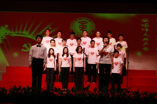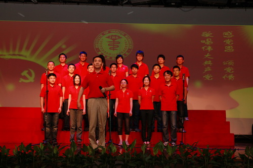 6月27日下午,上海交通大学医学院懿德楼3楼歌声嘹亮,掌声不断。由中科院上海生命科学研究院健康科学研究所党委主办的纪念建党90周年红歌会在此举行,上海生科院/上海交大医学院健康所全体党员,广大职工学生共聚一堂,一起重温了建党九十年的光辉历程。上海生科院党委书记张建新出席活动。