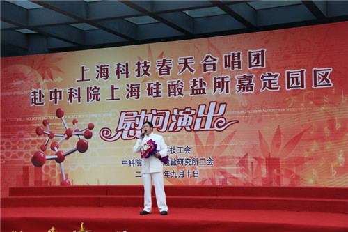 9月10日下午,上海科技春天合唱团赴中国科学院上海硅酸盐研究所嘉定园区慰问演出,给研究所的科技工作者以及新园区的建设者们送上了一台精彩纷呈的节目。上海市科技工会常务副主席王震、上海光学精密机械研究所工会主席吉峻、上海应用物理研究所工会常务副主席张平应邀观摩了演出,上海硅酸盐所副所长黄政仁、曹红梅出席此次活动。