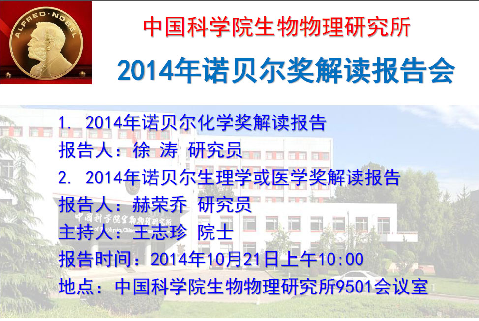 10月21日生物物理所诺贝尔奖解读报告会预告