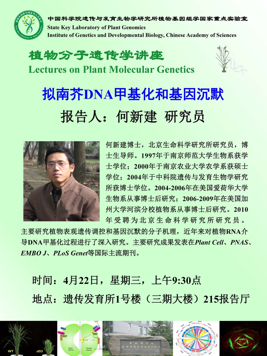 4月22日植物分子遗传学讲座预告:拟南芥DNA甲基化和基因沉默