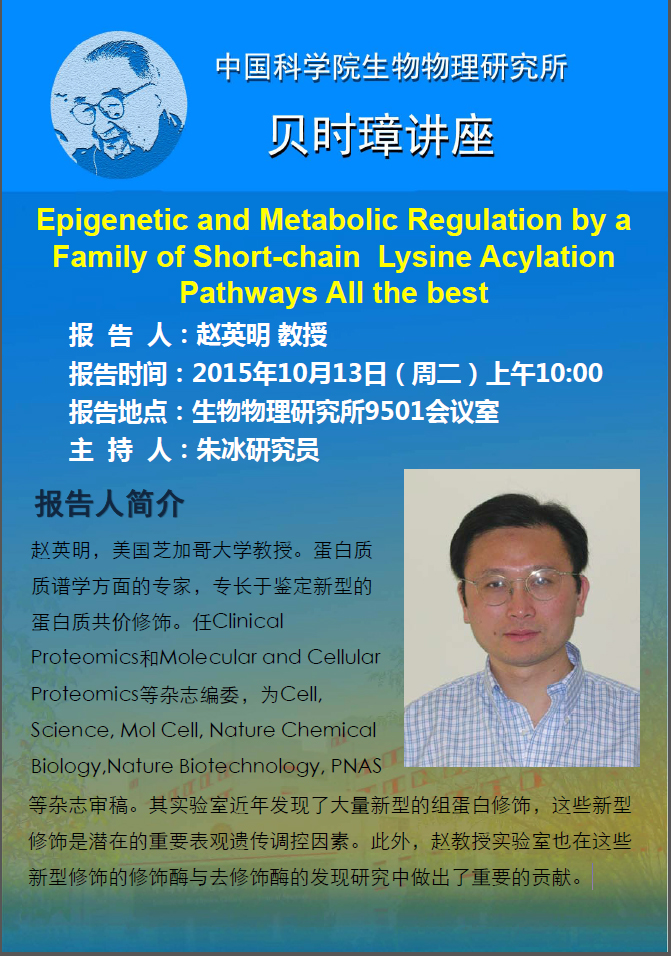 10月13日生物物理所贝时璋讲座预告