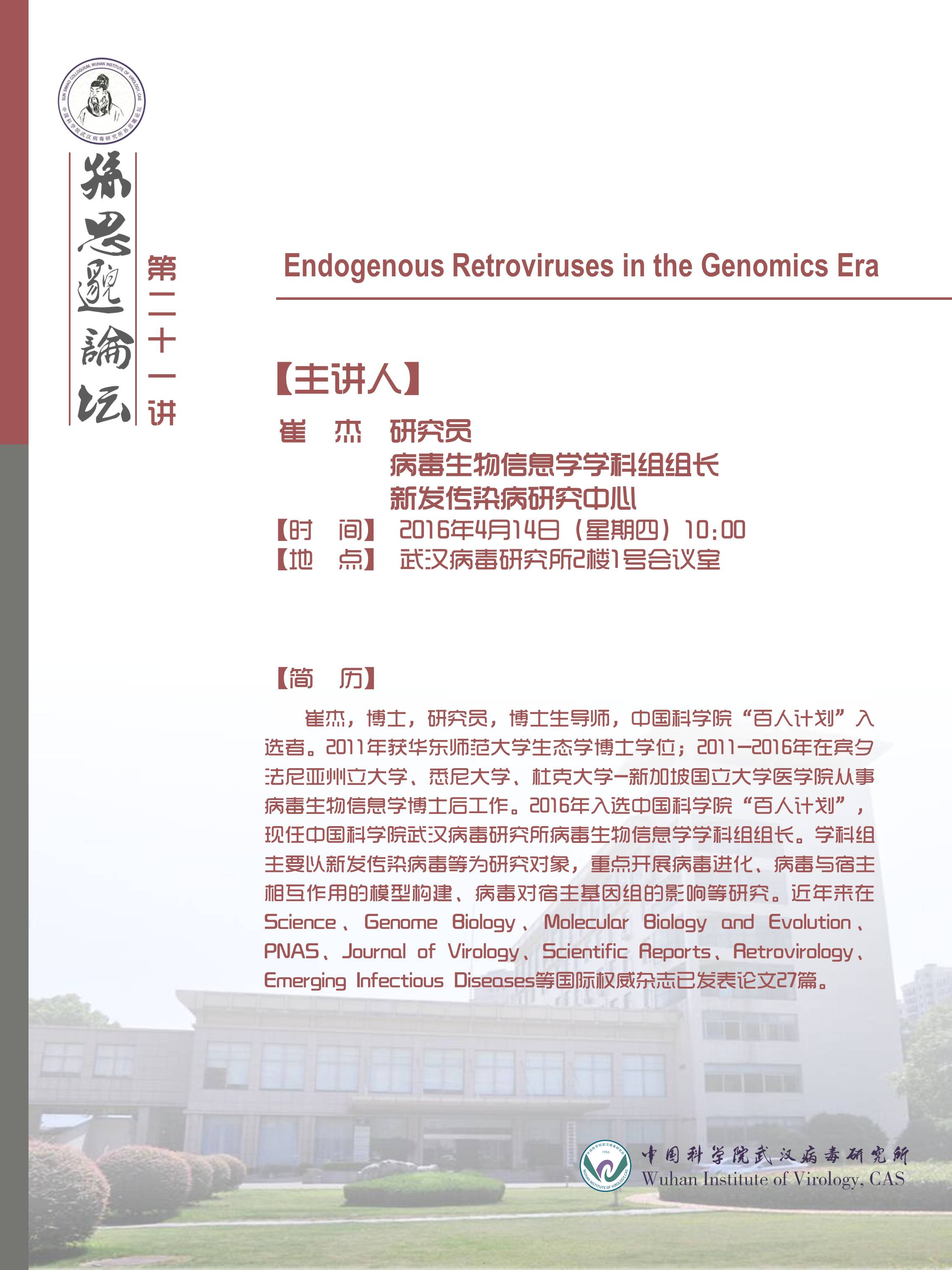 武汉病毒所孙思邈论坛第21期学术讲座预告