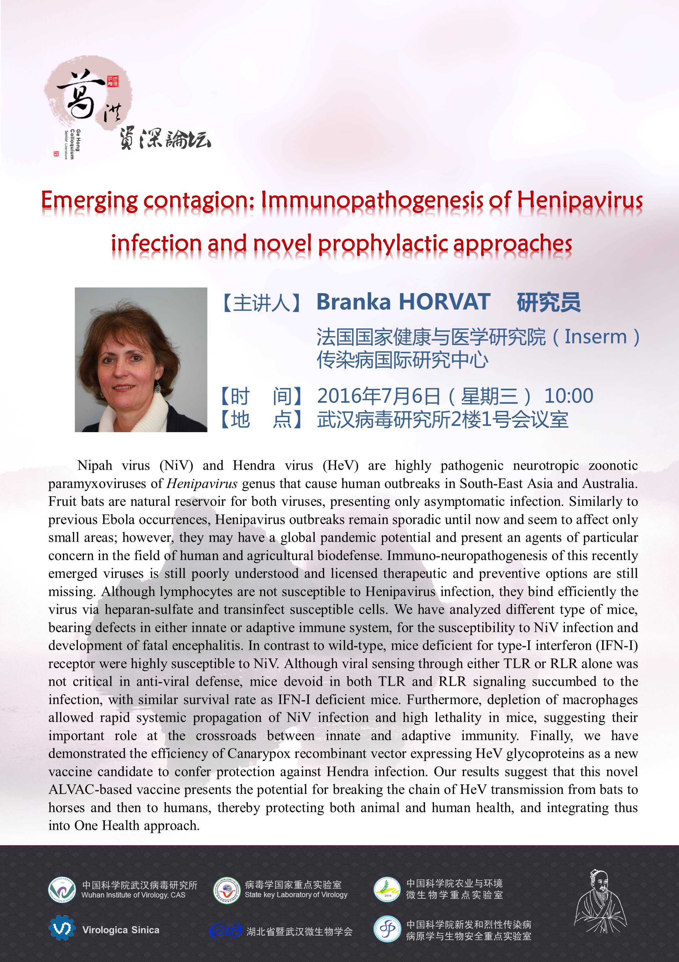 武汉病毒所第73期葛洪论坛预告