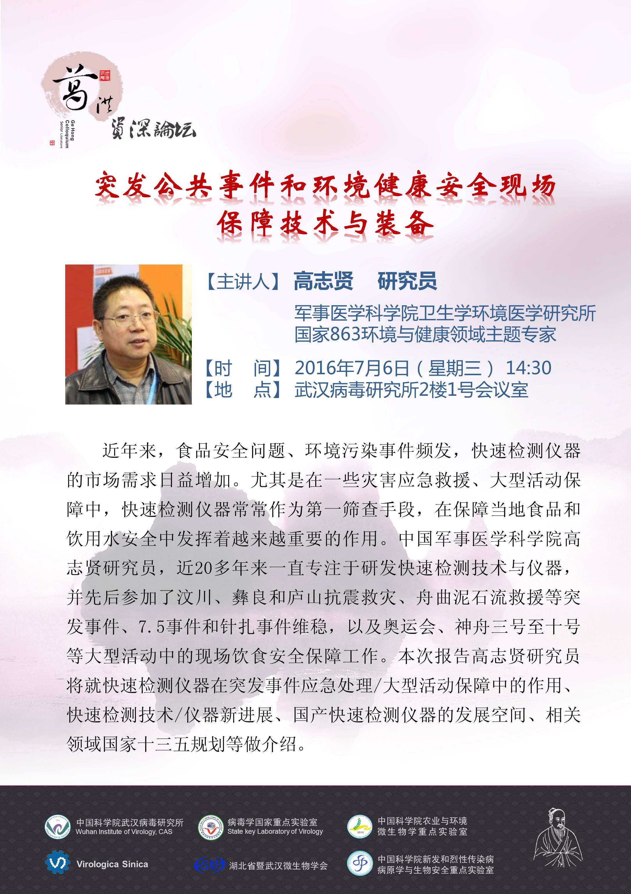 第74期葛洪论坛预告:突发公共事件和环境健康安全现场保障技术与装备