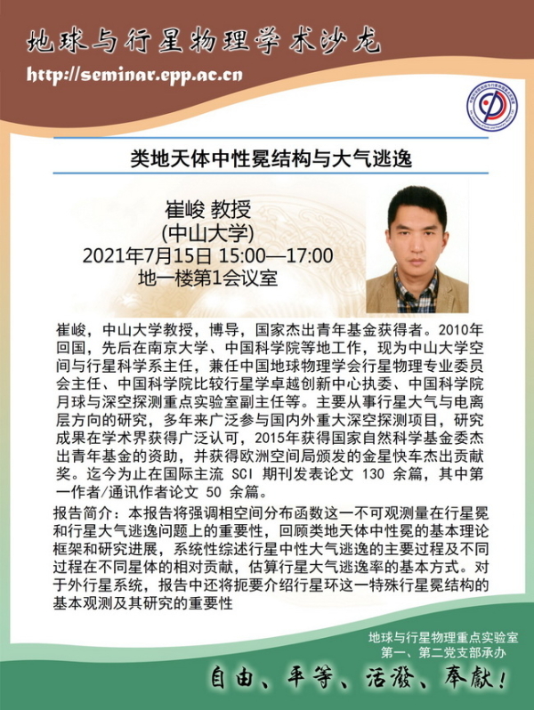 7月15日地质地球所学术报告预告