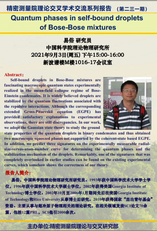 9月3日精密测量院学术报告预告