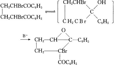 这是形成四元环的一个重要方法。将这个反应推广到二酮类化合物时,却得到不同的结果。25-二溴-1,6-二苯-1,6己二酮与碱性试剂反应,生成含五元环的化合物,高济宇认为反应可能是通过二酮的环醇式进行的: