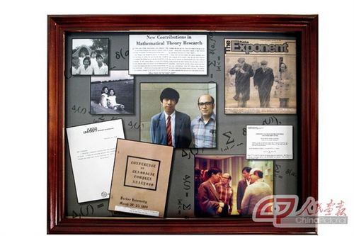 杨乐的国际数学界朋友送给他的礼物,画框里有他们在一起的合影、杨乐家人的照片,还有外国媒体对杨乐的相关报道。