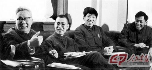 1978年3月31日,杨乐(左三)与数学家华罗庚(左一)、陈景润(左二)、张广厚(左四)一起参加全国科学大会。(《人民画报》资料室 供图)