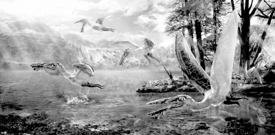 “目前还无法准确知道下颌骨脊的功能,但我们推测这很可能与飞行和捕食功能有关。”汪筱林说,伊卡兰翼龙的下颌骨脊呈半圆形,边缘平滑似刀片状,很可能还具有一层较薄的角质鞘。这一结构不仅能降低伊卡兰翼龙飞行时的阻力,也具有切割流体的功能。“如果这一推论成立,我们认为伊卡兰翼龙在淡水湖泊捕猎食物的方式可能和现生剪嘴鸥的捕食方式类似,它们会贴近水面飞行,将薄薄的下颌骨脊部分或全部切入水中,一旦发现水面附近的鱼类就迅速将其捕获。”