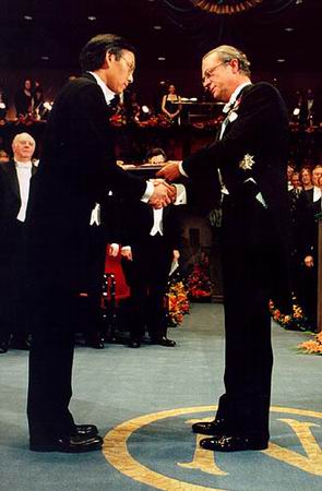 1997年华裔科学家朱棣文领取诺贝尔物理学家奖时的照片