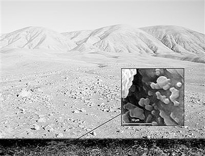 据美国物理学家组织网2月16日报道,西班牙天体生物学中心和智利北部天主教大学的研究人员,通过一种类似于探测火星土壤底层生命迹象的仪器,在智利阿塔卡马沙漠地下两米的疏水基底发现一个“微生物的绿洲”。这个有关“生命能够在地球上最干旱的沙漠下繁衍”的研究刊登在最新一期的《天体生物学》杂志上。