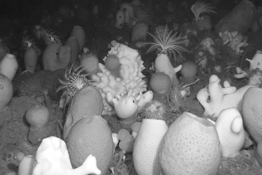 这些米色的鳞茎拥有复杂的二氧化硅骨骼(包括六放海绵纲中的数个物种),且已知它们在寒冷深渊中生存。玻璃海绵小的有拳头大,而大的则能达到斯玛特小汽车的大小。它们通常会在数十年的时间里不出现任何生长和繁殖的迹象。