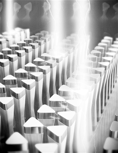 据物理学家组织网近日报道,研究人员开发的纳米天线称为柱-领结纳米天线(p-BNA)阵列模板,每根直径约250纳米,用金制作成领结状柱块,“领结”下垫有500纳米高的玻璃柱。单个p-BNA间隙大小可调节缩小约5纳米(比用目前传统的电子束平印技术所能达到的要小4倍)。