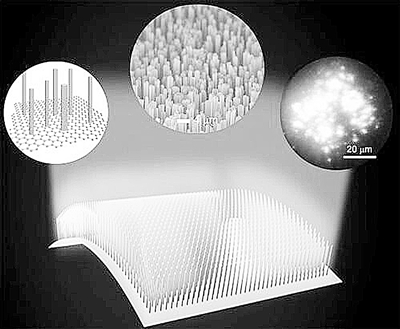 幸好,氮化镓与石墨烯的结合,部分实现了强强联合这一理想目标,一种能“变形”的发光二极管(LED)材料已经诞生。据物理学家组织网近日报道,由韩国首尔大学伊圭哲(音译)教授领导的研究小组将微型的氮化镓棒植于石墨烯薄膜表面,制成了一种可弯曲和伸缩的LED材料,这意味着,可弯曲变形的显示器等LED产品或许将广泛出现在我们的生活之中了。研究成果细节刊登在由美国物理联合会(AIP)出版的《应用物理学快报·材料》杂志上。