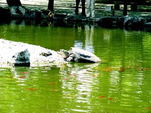 所以,WCS邀请Kuchling教授对苏州动物园和西园寺的斑鳖池改造设计献计献策。实地勘察之后,Kuchling教授提出了很多改造意见:营造斑鳖上岸繁殖所必备的沙滩、泥土岸;必须净化水质;植被多样性要增加;游客参观区和斑鳖繁殖区要分离等。