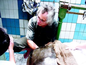 Gerald_Kuchling博士在检查长沙动物园的斑鳖