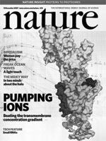 P-型ATP酶是对所有真核生物和很多原核生物具有根本重要性的阳离子泵。本期Nature上3篇论文介绍了关于这一超级家族关键成员的结构及功能研究。本期封面所示为钠离子和钾离子泵的结构,是由Morth等人在本期杂志上以3.5埃的分辨率描述的,同时还刊登了J. C. Skou关于其50年前发现依赖于钠离子和钾离子的ATP酶活性的原始笔记。这篇论文显示了ATP酶与钾相结合的状态,同时还暗示了一种依赖于电压的调控基础。这些结果部分是通过与Skou所作实验相似的动能实验获得的。Olesen等人介绍了肌质网Ca2+-ATP酶(钙泵)的新的晶体结构,同时还有关于功能的研究工作,并且最终呈现了关于钙运输的一个完整机制。在植物和真菌中,细胞离子平衡状态和膜势是由胞质膜H+-ATP酶(另一种P-型ATP酶)提供动力的。Pedersen等人介绍了它的X-射线结构,提供了关于它是如何沿一个陡峭的电化学梯度来泵输质子的有关线索。