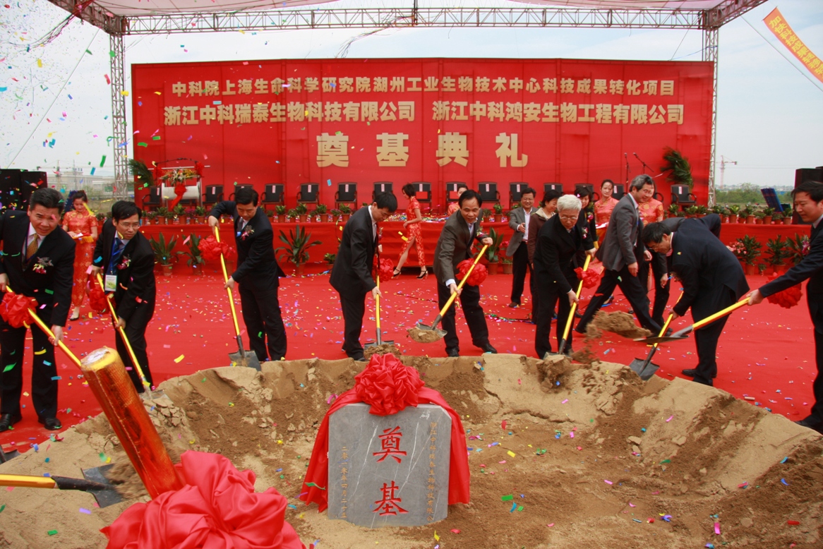 会议期间,李家洋和有关领导出席了中科院上海生命科学研究院湖州工业生物技术中心科技成果转化项目——浙江中科瑞泰生物科技有限公司和浙江中科鸿安生物工程有限公司项目举行奠基仪式。中科瑞泰和中科鸿安的奠基,标志着上海生科院湖州工业生物技术中心在科技成果转移转化和产业化方面迈出了新的步伐。