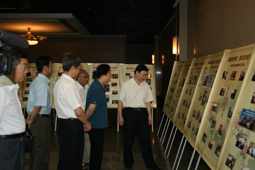 方新饶有兴致地观看影展,不时询问老同志的生活和工作情况,表达了对离退休老同志的亲切关怀。