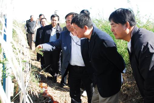 李家洋(右二)考察重度盐碱地咸水滴灌开发利用试验研究基地