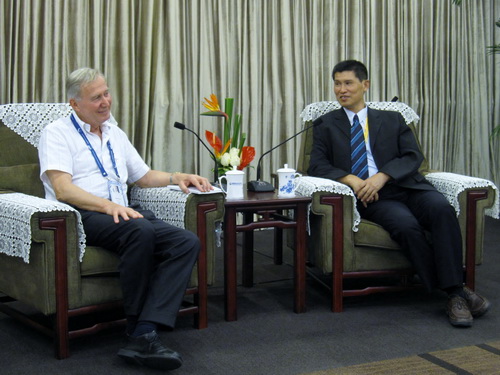 8月21日下午,中国科学院副院长詹文龙在北京国家会议中心会见了前来参加国际天文学联合会(IAU)第28届大会的阿塔卡玛大型毫米波/亚毫米波天线阵(ALMA)联合天文台台长泰斯•德•格劳夫(Thijs de Graauw)教授,就毫米波与亚毫米波天文学方面的合作等话题进行了会谈。