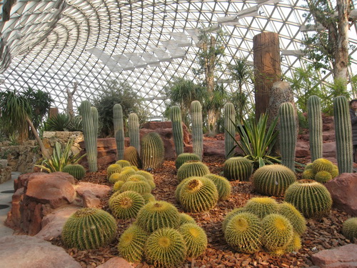 展览温室是由热带花果馆、沙生植物馆和珍奇植物馆3个单体温室和温室能源中心组成的温室群,总面积为12608平方米,收集来自不同国家和地区的植物种类3000多种,是目前亚洲最大的展览温室。