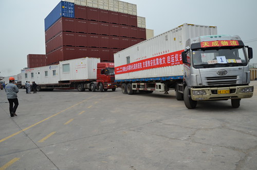 4月22日,四川省雅安市芦山县发生7.0级强震后的第三天,由中国科学院深圳先进技术研究院和中集集团联合捐赠的“全科箱房医院”已经在扬州装车发运前往灾区。预计在48小时可以抵达成都,再转运至灾区。