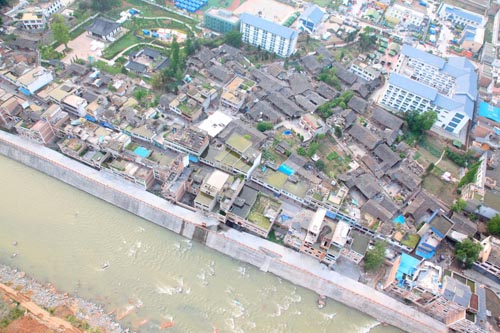 芦山县龙门乡古城村地处龙门乡中心,有很多损毁的三至五层建筑成为危楼。沈阳自动化所旋翼无人机沿受损危楼外墙面超低空、近距离飞行,探查楼体内生命迹象,未发现幸存者。随后,旋翼无人机通过低空飞行遥感方式,获得龙门乡古城村高分辨率灾情图。