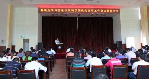 5月13日上午,中科院测量与地球物理研究所召开学习传达中科院机关科研管理改革工作会议精神大会,所长孙和平作了传达报告,党委副书记、副所长冯灿主持会议,全体在职职工参加大会。