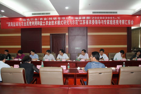 5月21日至23日,公益性行业科研专项“盐碱地农业高效利用配套技术模式研究与示范”项目组邀请江苏省、盐城市和东台市三级农业委员会的有关领导和专家,对滨海盐碱地农业高效利用技术模式研究与示范工作进行了现场检查,项目首席专家、中国科学院南京土壤研究所杨劲松研究员作了滨海任务江苏试验示范工作汇报。考查组充分肯定了江苏试区在滨海盐碱地农业高效利用与盐土农业关键技术与技术模式研发、技术规程制定、技术示范与推广、人才培养等方面取得的显著成绩。