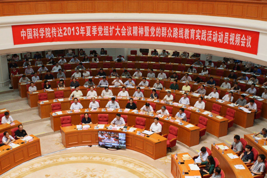 7月15日,中国科学院传达2013年夏季党组扩大会议精神暨党的群众路线教育实践活动动员视频会议在京召开。中国科学院院长、党组书记白春礼出席会议并作重要讲话,党组副书记方新主持会议。全国共设120个分会场约5330人参加会议,其中除在京的院党组成员、院领导、院老领导和院教育实践活动督导组成员、各分院党组书记、京区单位党政主要负责人等在主会场外,其余均通过院视频会议系统收看会议直播。中国科技网为其提供了全程高清视频会议服务。